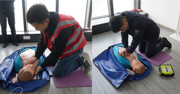 在心肺復(fù)蘇現(xiàn)場實操過程中,參訓(xùn)員工嚴(yán)格按照從現(xiàn)場環(huán)境安全評估、判斷意識心跳呼吸,到胸外按壓、開放氣道、人工呼吸的流程反復(fù)練習(xí),確保動作標(biāo)準(zhǔn)、力度到位。